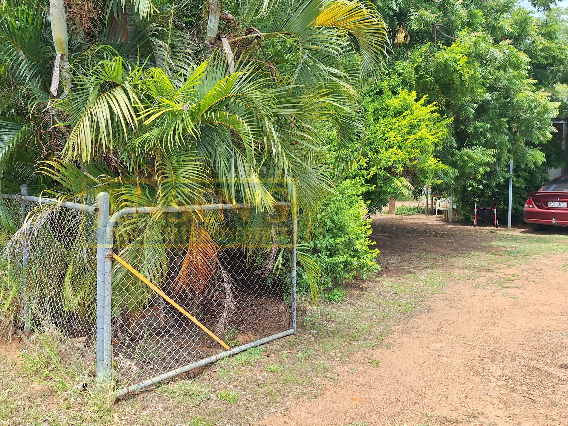 The property boasts views of the nearby Pentland Racetrack. The rich, red soil enhances the property’s natural beauty and is particularly beneficial for gardening enthusiasts. The grounds include a variety of fruit trees such as lemons, limes, oranges, avocados, mangos, mulberries, and passionfruit vines. The enclosed greenhouse has successfully produced seasonal vegetables, making it a gardener’s paradise.